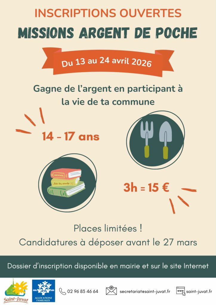 Missions Argent de PochePar saintjuvat22630 / février 26, 2026 Dossier d’inscription : Dossier d’inscription Autorisation parentale
